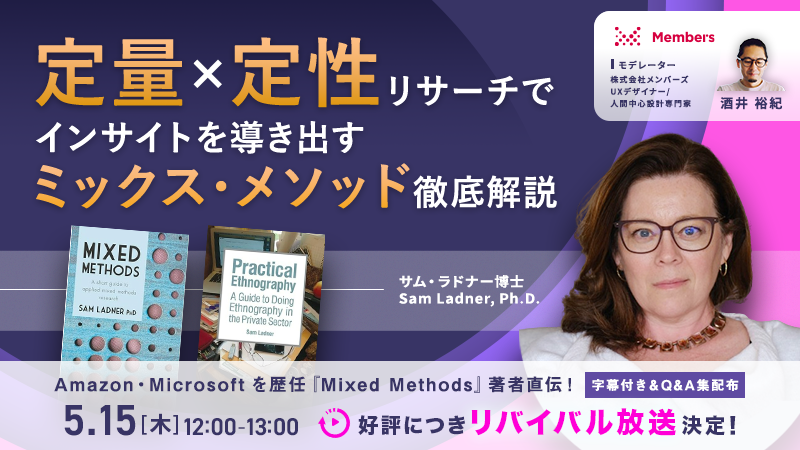 2023/12/26 会社 年末年始休業のお知らせ2022/7/1 イベント 【7月7日(木)無料ウェビナー】Amazon UXヘッドが解説。チーム連携とプロダクト成功を実現する North Star ビジョン 組織内すべての人が目指すべき統一的な「North Starビジョン」を策定する2022/6/8 イベント 【6月21日(火)無料ウェビナー】HCD-Net(人間中心設計推進機構)理事長 篠原稔和氏 出版記念。組織を成功に導くメソッド「人間中心のデザインマネジメント」入門 UX戦略、デザイン経営、デザインマネジメントの現在(いま)を学ぶお知らせ一覧FAQ