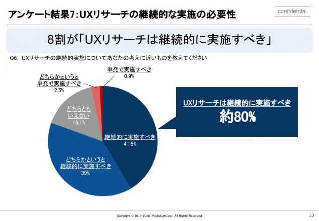 本調査では、80%の回答者が「UXリサーチは継続的に実施すべき」と回答しました。