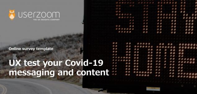ほかにも、UserZoom社は、自社サイトのコンテンツやメッセージングに特化したUXサーベイ用テンプレート“UX test your Covid-19 messaging and content”を提供しています。