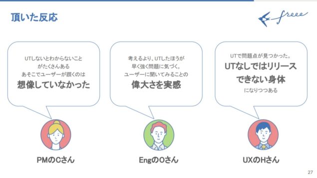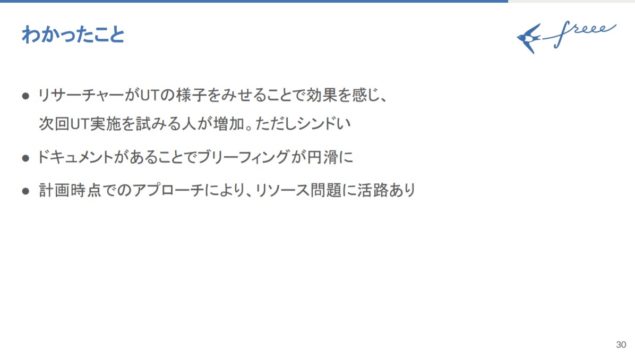 このようにユーザビリティテストができる人を増やしたり計画時点で織り込むことで、リソース問題の活路を見い出すことができました。