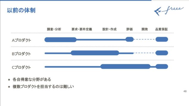 もともとUX部はあったのものの、人によって得意・不得意な分野があり、どのプロダクトに誰がアサインされるかによって厚いところと薄いところができてしまいました。特にfreeeの場合は会計・人事労務・プロジェクト管理と幅広く、その全てを理解するのは困難です。