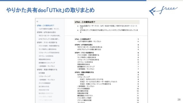 ユーザビリティテストの必要性に気づいてもらえたので、今度はやり方を共有ドキュメントに取りまとめました。これを読んで試して、そして相談してもらうことで社内のユーザビリティテスト経験者を増やしていきました。