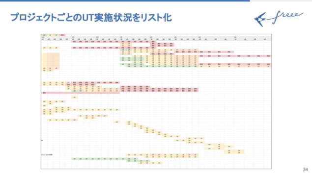 基本的にはユーザビリティテストを実施する方針にし、プロジェクトごとに工程を並べて「どこにUTを入れられるか」「入れる前提で組むとどうなるか」といった相談をしながら、デザイナーが実施状況をリスト化しました。