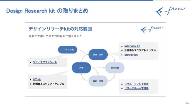 先ほど紹介した「UT kit」のように、「Design Research kit」を取りまとめました。今ではHCDの各サイクルに対応できる状態までドキュメントを増やしています。