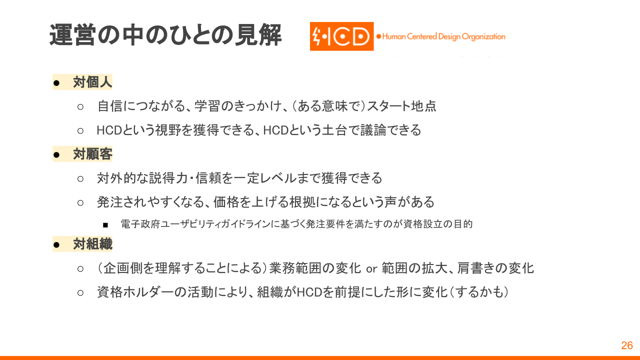 • 受験後:「資格以外に何をしている団体かわからない」「HCD団体なのに使いづらい、わかりづらい」「資格以外の活動もあって意外と現場」
