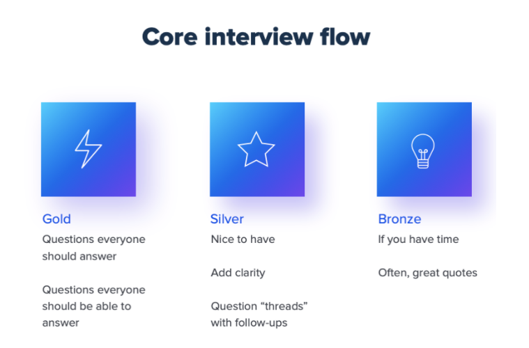 また、インタビューの構成を考えるときには、金・銀・銅など質問をランク付けすると、フローを効果的に管理できます。