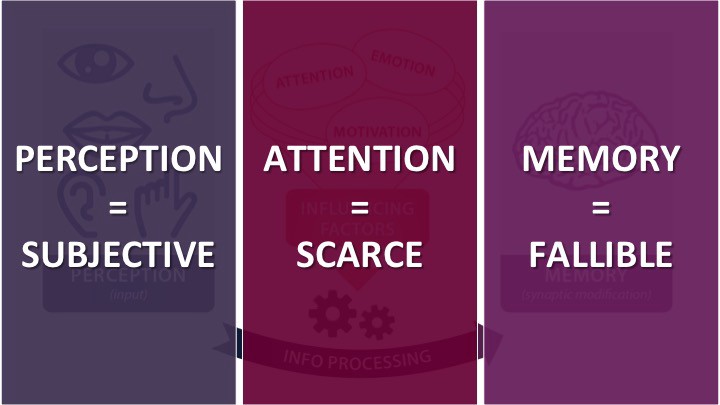 ▲人の脳の主な限界―知覚は主観的であり、注意力は乏しく、記憶は誤りやすい―
