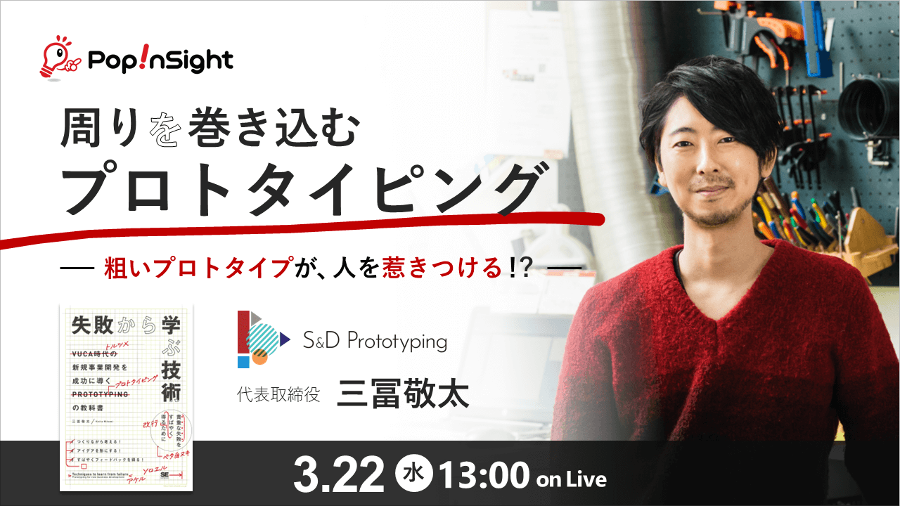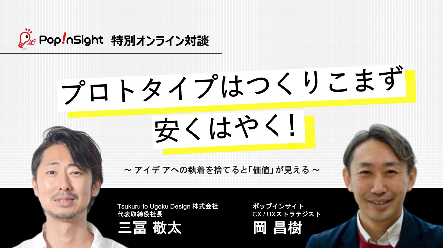 そこで今回は、アイデアやコンセプト設計段階でのプロトタイピングがご専門の三冨 敬太さん(Tsukuru to Ugoku Design 株式会社 代表取締役、veernca合同会社 代表社員)をお招き。Yahoo!JAPANやKDDIでUX責任者などを歴任し、様々なアイデアを世に送り出してきたポップインサイトCX/UXストラテジストの岡 昌樹との公開対談を開催しました。