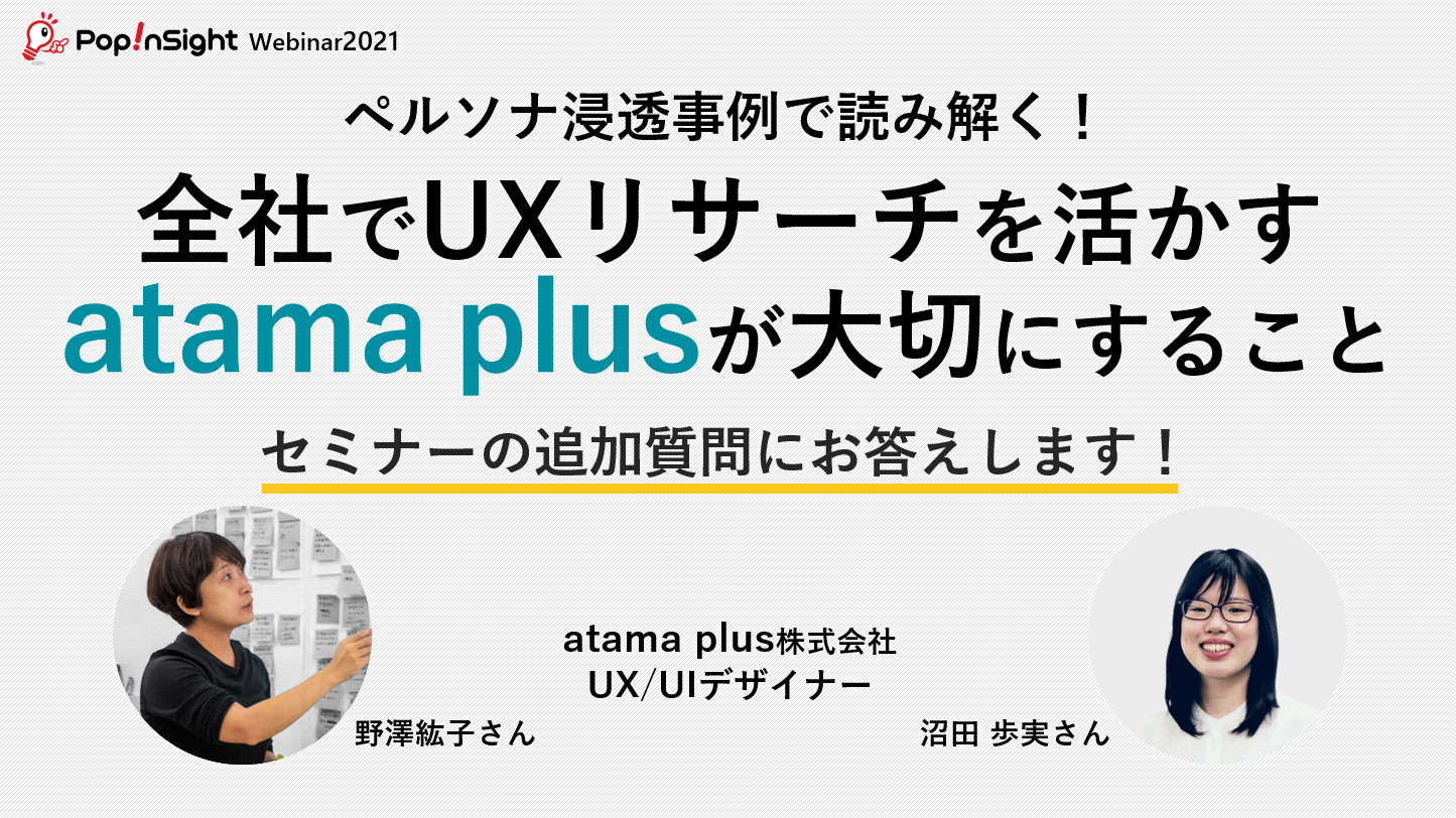 先日、ポップインサイトさん主催のウェビナーで「ペルソナ浸透事例で読み解く!UXリサーチを全社活用するatama plusの大切にすること」というテーマでお話をさせていただきました。