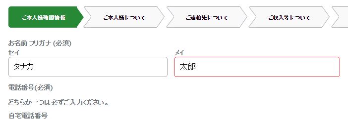 この場合、必須項目が正しく入力されるまで申込ボタンが表示されないようにすることが有効です。ユーザが正しく入力した時点で申込ボタンを表示させることで申込エラー自体が無くなり、ユーザの離脱率を下げることができます。