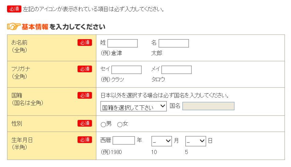 ユーザは、アンケートや詳細な個人情報など不必要と感じる項目には情報を入力したいとは思いません。「必須項目」が多くなるほどユーザの離脱率は高まります。まずは入力必須の項目を減らし、こちらが入力してほしい項目は任意で入力してもらうようにしましょう。また、入力必須項目には「必須」というテキストをいれて目立たせることで、必須項目がユーザにはっきりわかるようにしましょう。