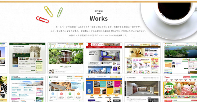依頼主へのヒアリングを丁寧に行うことはもちろん、マーケティング戦略やWebページのコンセプト、デザインなどをしっかりと話し合うことができるWeb制作会社です。また、ソーシャルメディアの活用やSEO対策などを一体的に取り組んでくれます。経営理念に「科学性」・「人間性」・「社会性」の3つを挙げ、地域企業の役に立ちたいという熱い想いを持っています。この想いが示すように制作実績も仙台の様々な分野の企業が中心です。