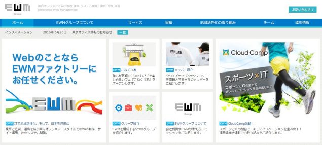 株式会社EWMジャパン(本社:東京)と佐賀市の間で2006年に締結された進出協定に基づいて設立されたWeb制作会社です。いわば自治体のお墨付きの事業者なので、安心して取引できると思われます。EWM(Enterprise Web Management)とは企業・組織におけるウェブ戦略の計画・制作・運用・評価までのサイクルを効果的に管理・実行するための仕組みを意味します。東京のEWMジャパンは北海道洞爺湖サミット(2008年)やIMF・世界銀行総会(2012年)など大規模な国際イベントのサイトを制作・運営してきた実績があります。