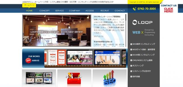 すべてのクライアントや取引関係者とのつながりが「線」から「輪(LOOP)」になっていくような関係づくりを目標としている地域密着型のWeb制作会社です。デザイン×プログラミング×コンサルティングの三位一体といった自社最大の強みを活かし、これら各分野においてスペシャリストのスタッフ達が連携しながら培ってきたノウハウと技術でクライアントのニーズに応えたホームページ制作を行っています。他にもホスティングやリスティング広告代行などのサービスも提供しています。