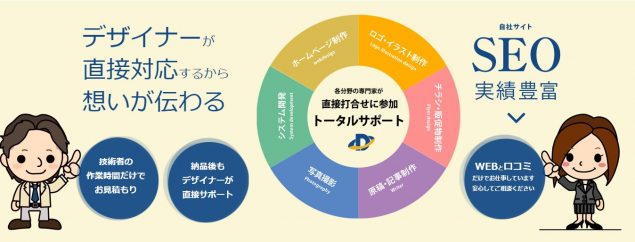 地域密着型のWeb制作会社です。直接会って、希望を聞き打ち合わせをした上でホームページの制作をしています。テンプレート型のホームページ制作ではなく、ヒアリングを十分した上でデザインやシステムを提案しています。ホームページ完成後の管理・運営・SEO対策などのサポートも受けることができます。各印刷物の制作もセットで依頼することが可能です。制作実績としては、医療機関や不動産会社、化粧品メーカーなど多数あります。