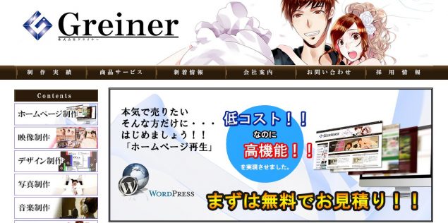 Web制作、広告デザイン、映像制作、イベントなどそれぞれの専門クリエイターが所属しており、それぞれの能力を活かしてホームページ制作、大規模イベント、デザイン等の企画・制作をワンストップで行っているWeb制作会社です。クライアントの要望に沿ったホームページやスマホサイトをWordPressといったブログソフトウェアを使用して制作しています。ホームページの企画・立案・デザインなどの提案をマーケティングに基づき行っています。