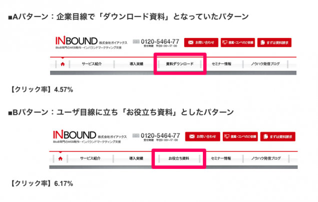 <企業目線の文言をユーザー目線の文言に変更してクリック率をあげた事例>