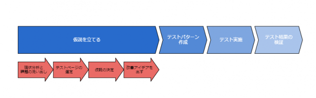 サイトの現状と課題を分析し、テストを実施するページとテスト箇所を決め、仮説を立てます。