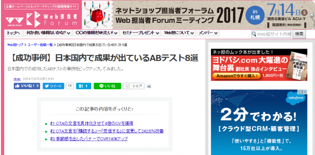 参考記事:【成功事例】日本国内で成果が出ているABテスト8選