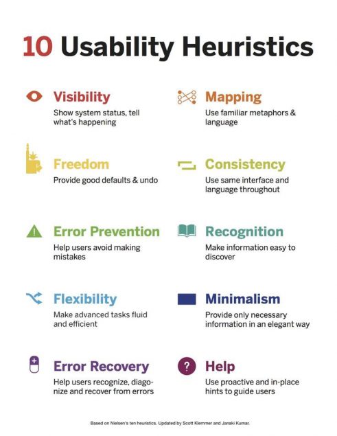 コーセラにおいてインタラクションデザインの専門であるスコット・クレマー教授による10個のヒューリスティック評価(出典:uxdesign.cc)