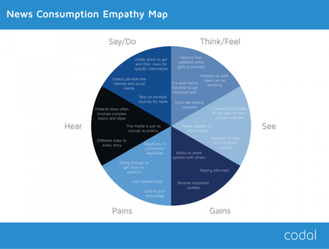 下記は、Codalで、ユーザーリサーチを元に作成したエンパシーマップ(empathy map)です。