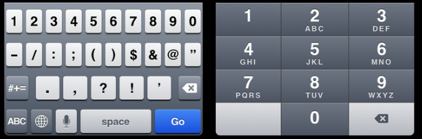 日付や郵便番号、クレジットカード番号など数字のみを含むフィールドにおいては、タップする対象がより大きい電話タイプのキーパッドを利用することで、入力時のユーザーの労力を最低限に抑えることができます。(電話タイプのキーパッドを表示させるためには、「tel」をtypeの値として使用するか、「pattern=”[0-9]*”」属性を追加してください)。