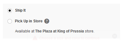 ユーザーに郵便番号の入力を求める代わりに、製品詳細ページは位置情報を取得し、もっとも近い店舗から自動的に商品の在庫を検索します。これは時間を節約することに加え、ユーザーの労力を必要とせずに有用な情報を提示します。