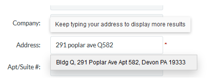 Think Geekのチェックアウトでは、SaaSベンダーであるPCA Predictを導入しており、アパート番号を入力すると候補をサジェストし、正しい住所フォーマットに直してくれます。