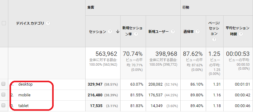 訪問ユーザーがどのようなデバイスを使っているかを把握することにより、効果的なサイト改善が行えるでしょう。