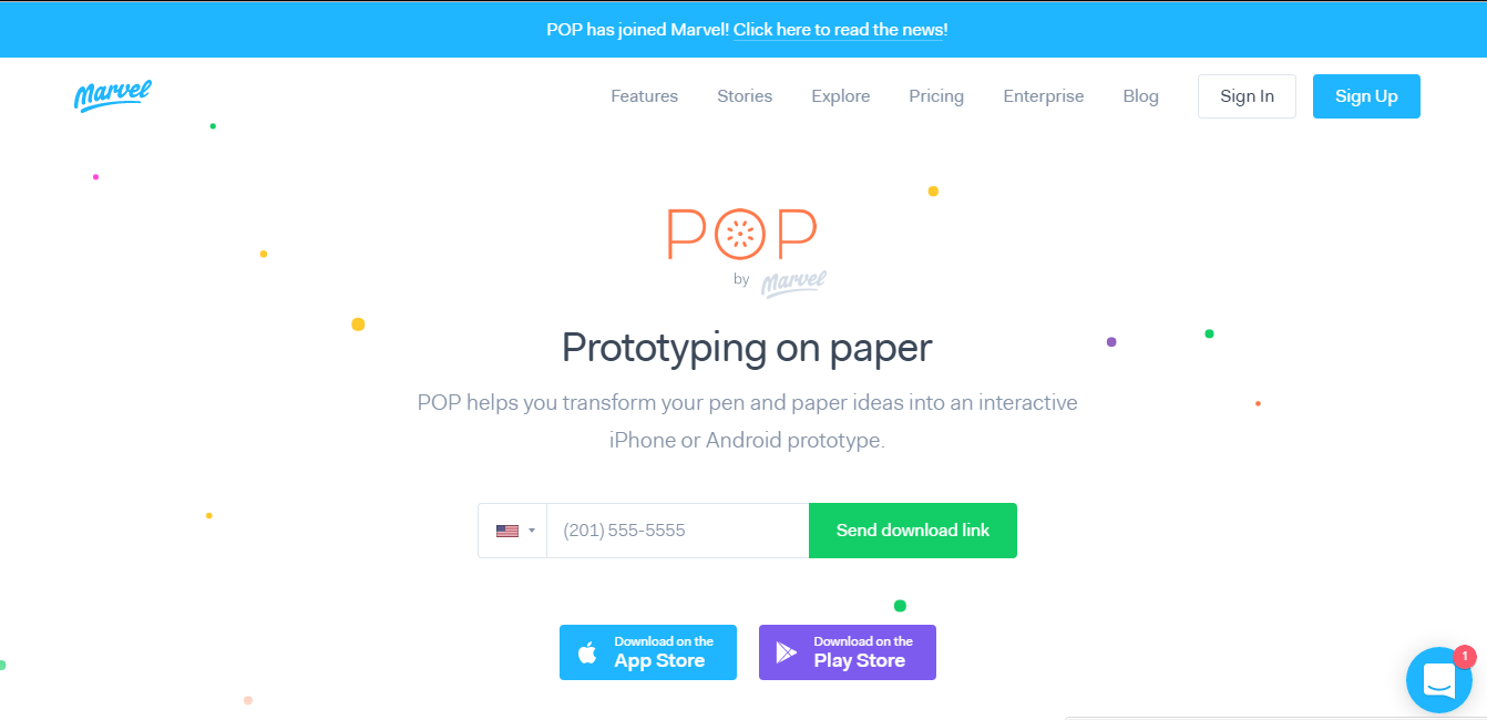 POPは、2012年にリリースされたプロトタイピングツールで、2016年にはMarvelに買収されました。スマートフォンアプリケーションのみで展開しています。紙にスケッチしたワイヤーフレームを写真で撮り、アプリで画像として読み込むことができます。遷移箇所を指定するだけで、簡単かつスピーディーなプロトタイピングが可能です。