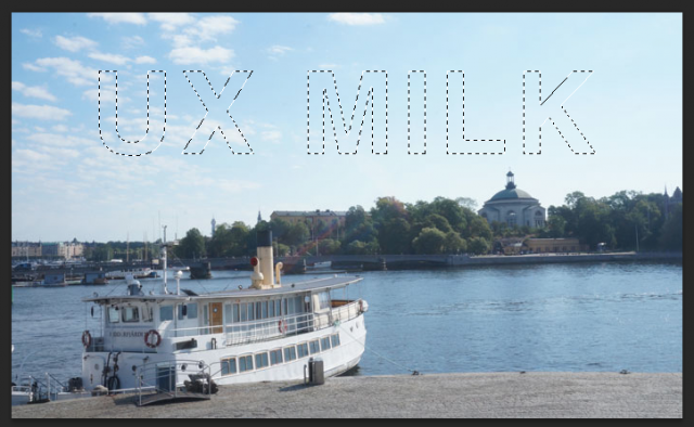 文字ツールアイコンを選択した状態でクリックすると、クリックした箇所を始点に文字の入力ができます。上の画像では文字ツールを使って、UX MILKと入力してみました。