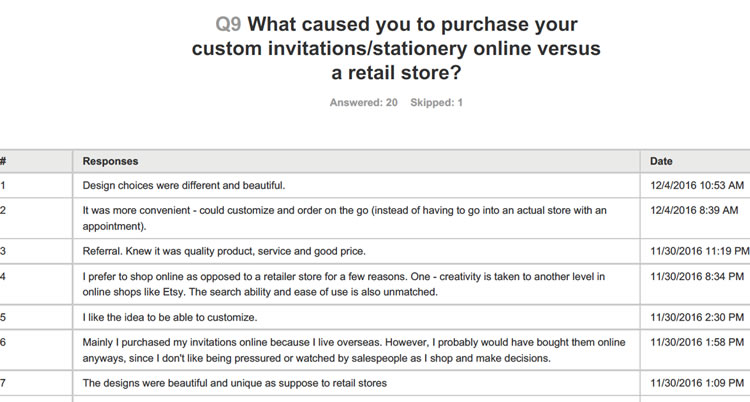以下のスクリーンショットは、Codalがあるプロジェクトで行ったアンケートの例です。私たちのUXチームは、消費者がなぜカスタマイズ品を注文する一方で、小売店に足を運んで「既製品」を購入するのか、という理由を突き止めようとしていました。