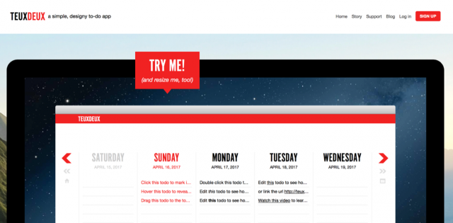 ホームページが表示されるとすぐに、ユーザーはTeuxDeuxのプロダクトを使うことができます。プロダクトを理解するのに、複数のスクリーンショットやイメージに頼る必要はありません。もし使い続けたいと思えば、あとで登録することができます。