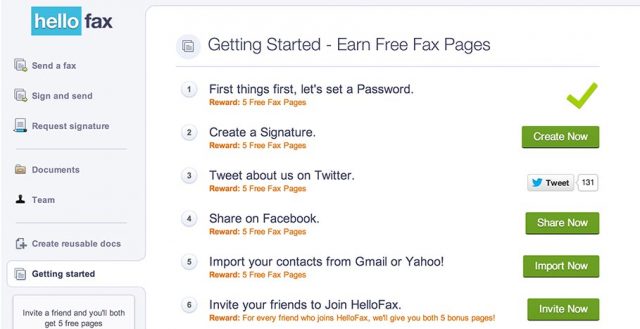最初にパンを提供するレストランのように、HelloFaxのサイトには、利用者にサービスを利用し続けてもらうための素晴らしい仕組みがあります。