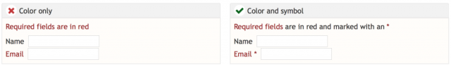 色覚異常は、特に男性にとって(男性の8%)良くあることです。重要な情報を強調するときには、色のほかに何か行うことをおすすめします。また、情報を伝えるために赤と緑だけを使うのは避けましょう。赤と緑の色覚異常がもっとも一般的と言われているからです。