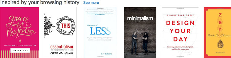 Amazonはパーソナライゼーションを完璧に行っています。Amazonにログインするたびに、閲覧履歴に基づいた好みに合いそうな商品が表示されます。そして、本も既に読んだものに似たものが表示されます。