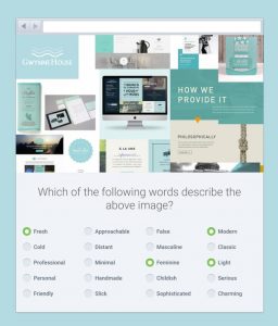 どちらが好きかを尋ねる代わりに、ブランドの言葉の一覧を見せて、どちらのデザインがそれらの言葉を上手く表現しているかを聞きましょう。そうすることで、単なる好き嫌いの話題から、ブランドに直接関連する話題に移行することができます。