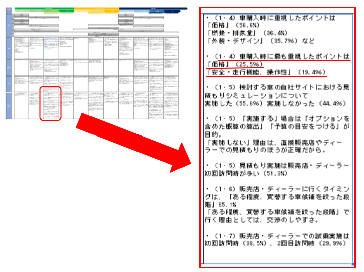 カスタマージャーニーマップ(自動車)+リサーチ結果 を見てみる>>