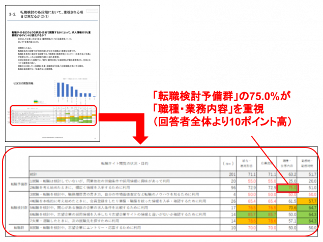 「転職検討予備群」の75%以上が「職種・業務内容」を重視する傾向。