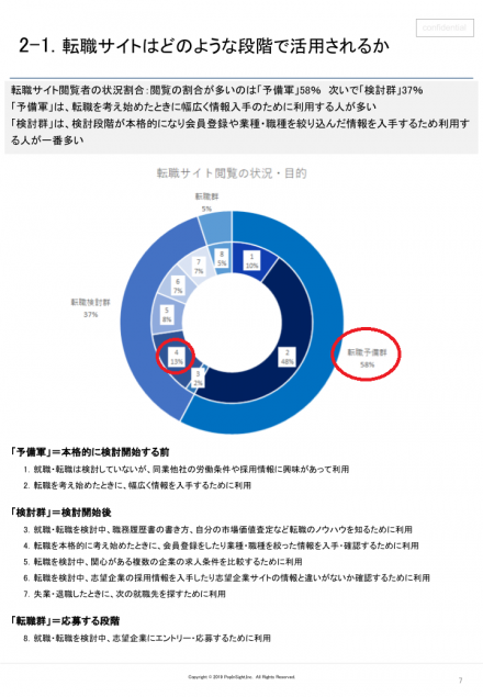 転職サイトをより頻繁に利用するのは、転職を始めたばかりで幅広く情報が欲しい「検討予備群」(58%)と、本格的な転職活動を始めた「検討群」(37%)のうち、検討段階が本格的になり、会員登録や情報収集を行っている群(13%)が多いことが分かりました。