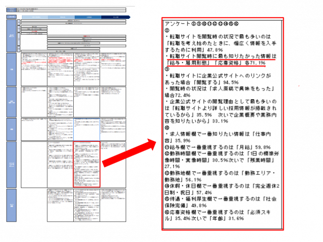 転職検討フェーズによってサイト閲覧頻度や知りたい情報が異なる、というのは定性調査ならではの興味深い発見です。こうしたリサーチデータを活用すれば、コンテンツ改善のポイントをターゲットごとに整理することが可能となり、具体的な施策が立てやすくなります。
