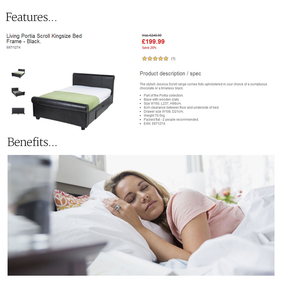 優秀なコピーライターは、ほとんどの人が製品の機能を気にしていないことを知っています。ユーザーが意識しているのは、機能自体ではなくそれらの機能がもたらすメリットです。