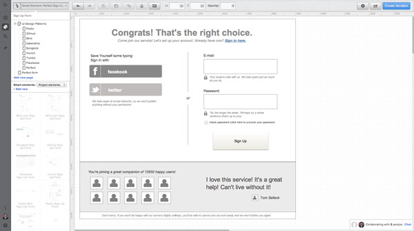 Songkickの登録フォームのワイヤーフレームテンプレートをUX Pinからダウンロードする