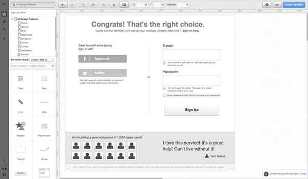 Tumblrの登録フォームのワイヤーフレームテンプレートをUX Pinからダウンロードする