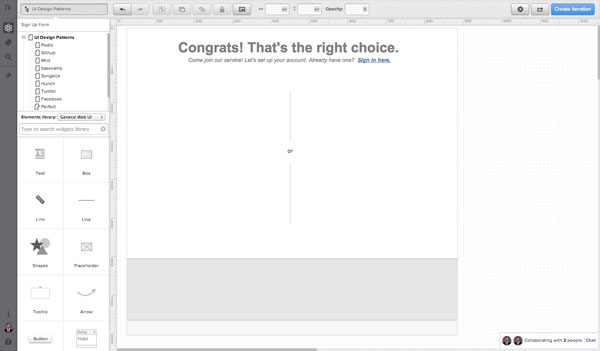Podioのミニサイズ登録フォームのワイヤーフレームテンプレートをUX Pinからダウンロードする