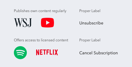 「サブスクリプションをキャンセル(Cancel Subscription)」の代わりに「登録解除(Unsubscribe)」を使用する方が良いと思う人もいるかもしれませんが、これは間違いです。