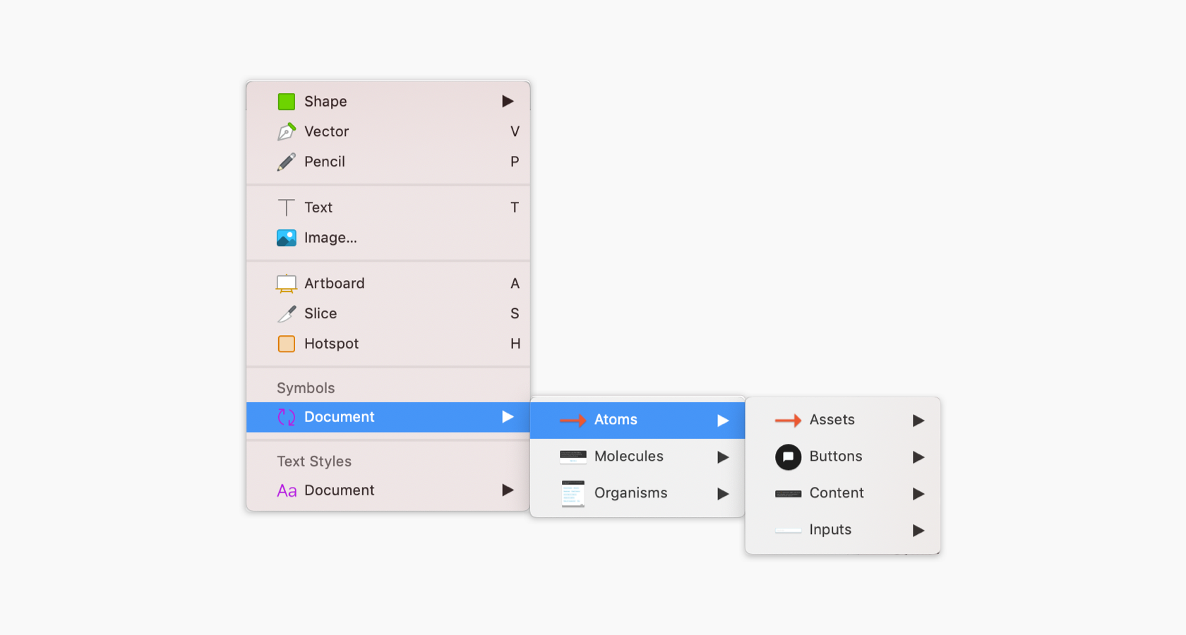 次に提示した命名規則に従って、シンボルを、「Atoms/」の下に表すことができます。