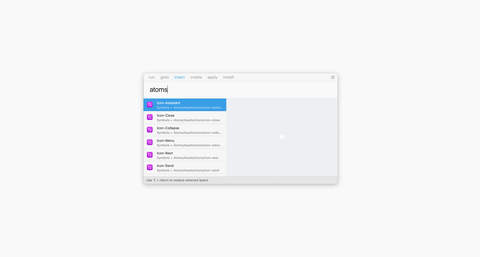 Runner for Sketchは、延々と続くメニューから探す代わりに、一連のキーボードコマンドを提供することによって、デザイナーのワークフローを最適化します。たとえば、「insert」と入力してtabキーを押せば、求めるコンポーネントを探すことができます。