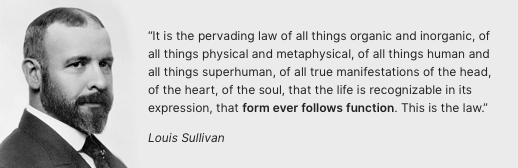 インターフェイスの要素の機能によって、どのような視覚的手がかりを使うべきなのかが決まります。その機能に応じて、インターフェイスの要素がどのように見えるか判断しましょう。有名な建築家Louis Sullivan氏が20世紀に残した名言によれば、「形式は機能に従う」のです。