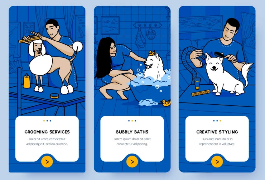 Marta氏は、主なグルーミングサービスを示す優れたイラストをいくつか作成しました。ビジュアル的なマテリアルがすべてを語ってくれていることから、わざわざコンテンツを読む必要がないほどです。